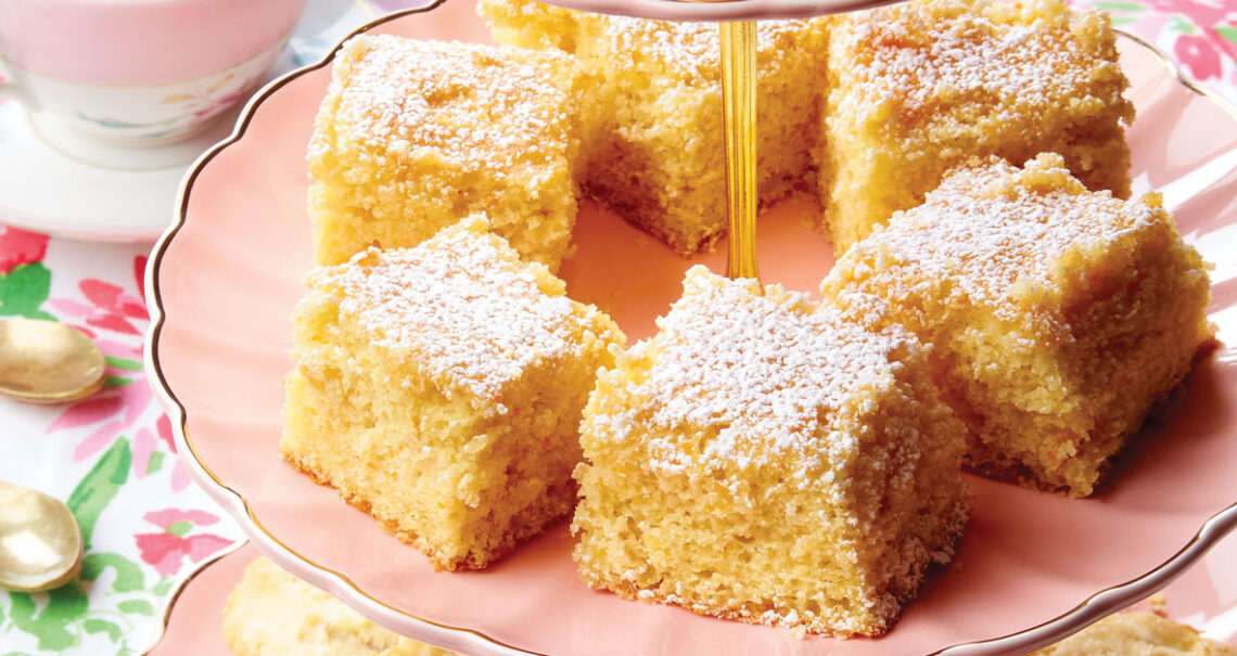 Pour batter into prepared dish and bake for 40 minutes or until edges turn light brown. Let cool for 10 minutes, then cut into squares. Once squares have cooled completely, dust with powdered sugar.