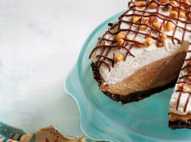 Top black-bottom cookie crust with layers of chocolate ganache, creamy peanut butter, and whipped cream to make this pie, which is beloved in the Bull City.