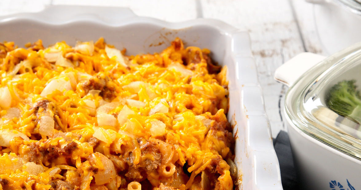 For a potluck meal or a family supper, cheeseburger pasta casserole is a crowd-pleaser.