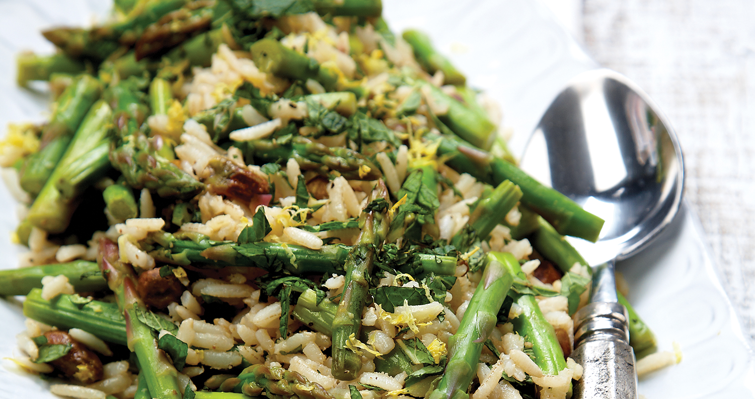 Asparagus, Pistachio, & Mint Salad with Lemon Vinaigrette