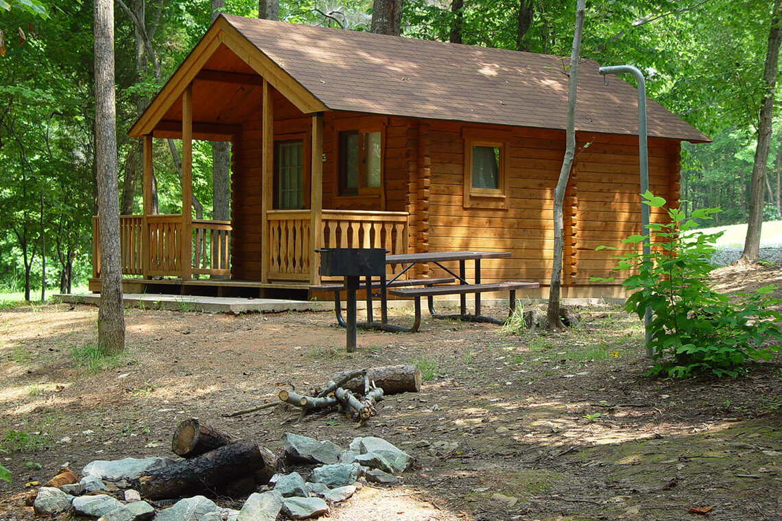 Rent a cabin at Mayo Lake Park for a relaxing getaway in the woods. Photography courtesy of Person County Recreation, Arts, and Parks