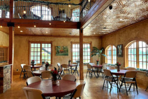 The main old English-style lodge — with its hints of both Italian and Western influences — houses two tasting rooms, and the upper and lower patios serve as the perfect backdrop for relaxation and good conversation. A beautiful, sparkling four-acre lake anchors the grounds.