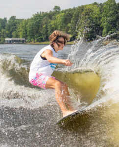 Wakesurfers flock to Hyco Lake, but you don’t have to be an athlete to enjoy making a splash. photograph by Colby Ross