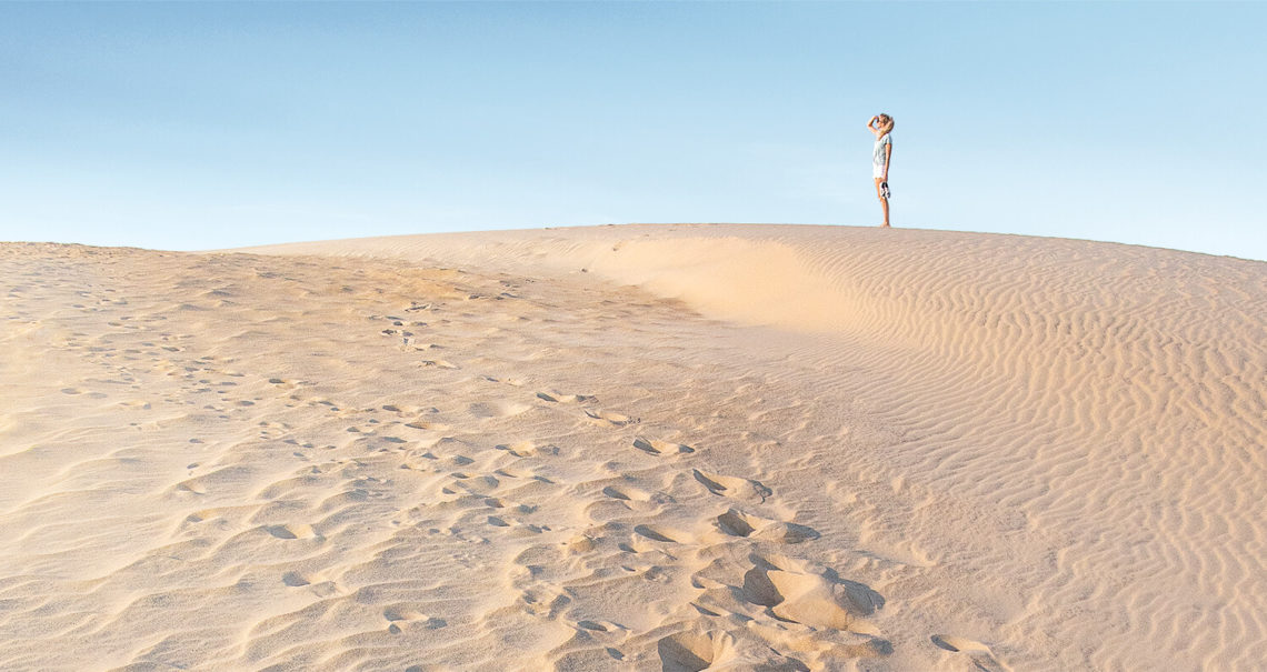 Two trails snake through the 426-acre Jockey’s Ridge State Park — one runs from the parking lot to the ridge and on over to Roanoke Sound; the other makes a loop through wetlands and maritime thickets near the sound. photograph by Chris Hannant
