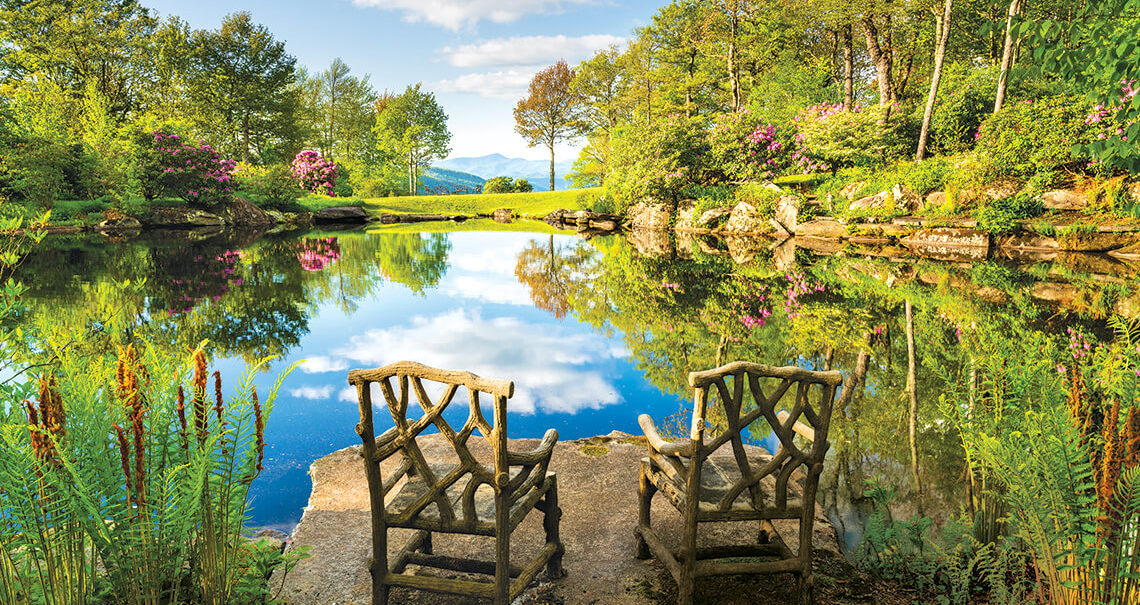 If Vaseyi Pond inspires tranquility, then the Viewsite nearby — looking out toward the mountains that unfurl in the distance — stirs a sense of wonder over our place in the natural world. On a clear day, you can see sunlight glinting off windshields on the Blue Ridge Parkway, and you can see dark green patches on faraway peaks, where the Southern Highlands Reserve staff has helped restore red spruce trees. Here at the water’s edge, we find the very best of what humans and nature can create together, honoring the legacy of the land and preserving its beauty forever.