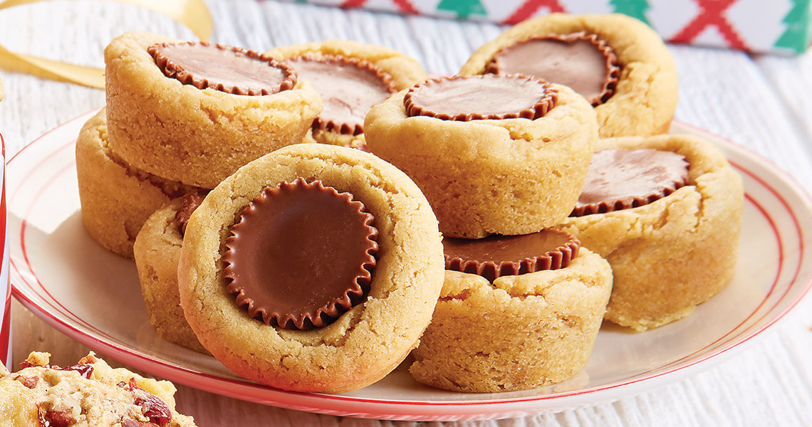 Bake for 8 minutes. Remove from oven and immediately press a peanut butter cup into each ball. Once cookies have cooled, use a butter knife to lift cookies out of pan. Store in airtight containers for up to 2 weeks.