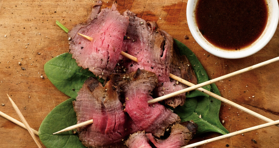 Yields: 8 servings. 1 cup vegetable or canola oil ¾ cup soy sauce ½ cup lemon juice ¼ cup Worcestershire Sauce ¼ cup prepared mustard 1-2 teaspoons coarsely cracked pepper
