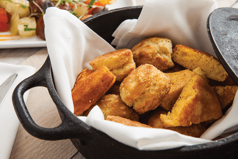 James Doss serves biscuits and cornbread in cast-iron Dutch ovens, a staple of classic country cooking. photograph by Joshua Curry