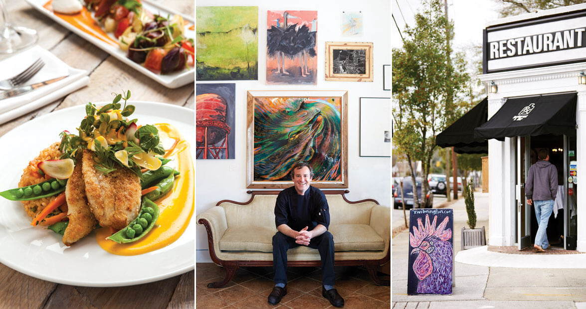 What they might not know is that much of their dinner originated only a few miles from the restaurant. Rx’s sweet potatoes and collards are grown by Cottle Organics, up Interstate 40 in Rose Hill. The chickens and eggs come from Red Beard Farms in Willard, the arugula from Black River Organic Farm in Sampson County, and more vegetables and eggs from Humble Roots Farm in Scotts Hill, just over the line in Pender County. The restaurant’s goat cheese, oysters, and clams all come from Nature’s Way Farms & Seafood in Hampstead. Wilmington-area boats bring in most of the fish, and as one Rx server puts it, “Our seafood is so fresh that you can almost see the fisherman rowing his boat up the street.”