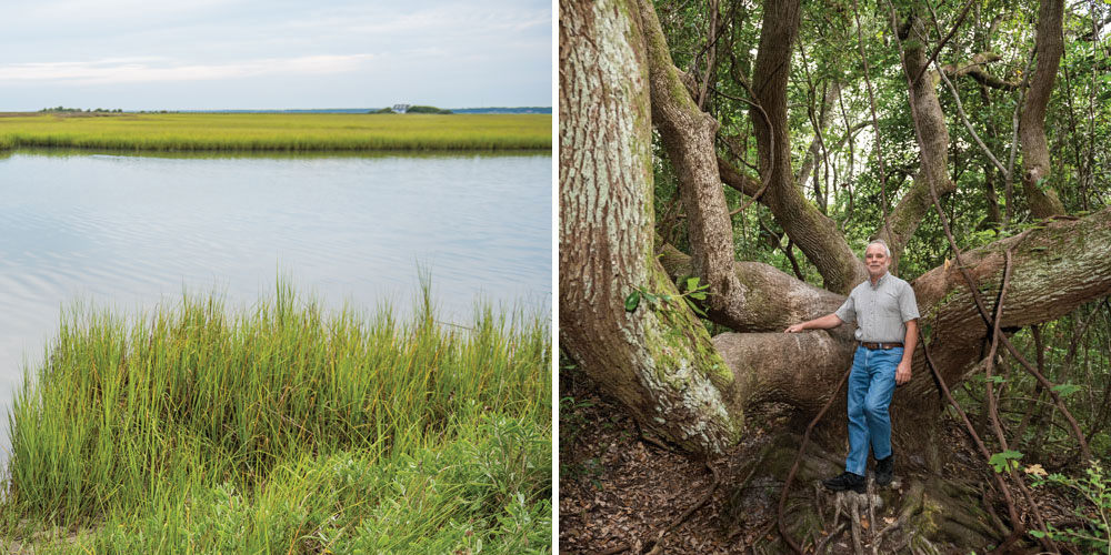 Hoop Pole Creek, 31 acres of marsh and maritime forest in Atlantic Beach, likely would have been developed if the Coastal Federation and its founder and executive director, Todd Miller, hadn’t purchased the land in 1997. photograph by C2 Photography
