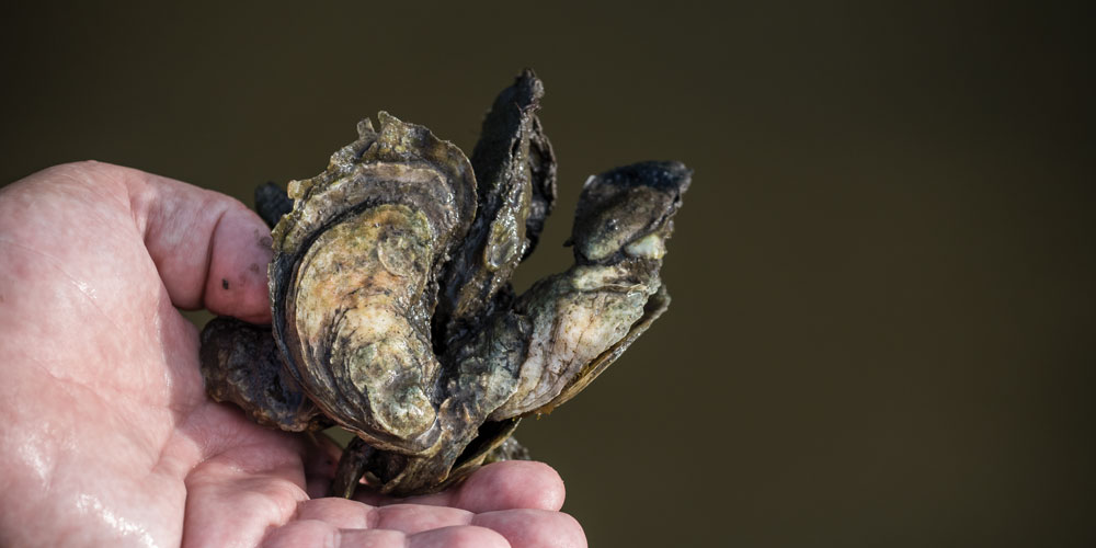 Just below the surface of Stump Sound, oysters huddle in stationary clumps, silently multitasking. More than just a link in our coastal economy, oysters provide habitat for other animals, help prevent erosion as part of a living shoreline, and clean the water — one oyster can filter up to 50 gallons of water a day. But the vital bivalve is also at a disadvantage: Once oyster larvae find purchase on a hard surface — often on other oyster shells — they stay there forever, for better or worse, their health a reflection of the waters around them. So they need all the human help they can get.