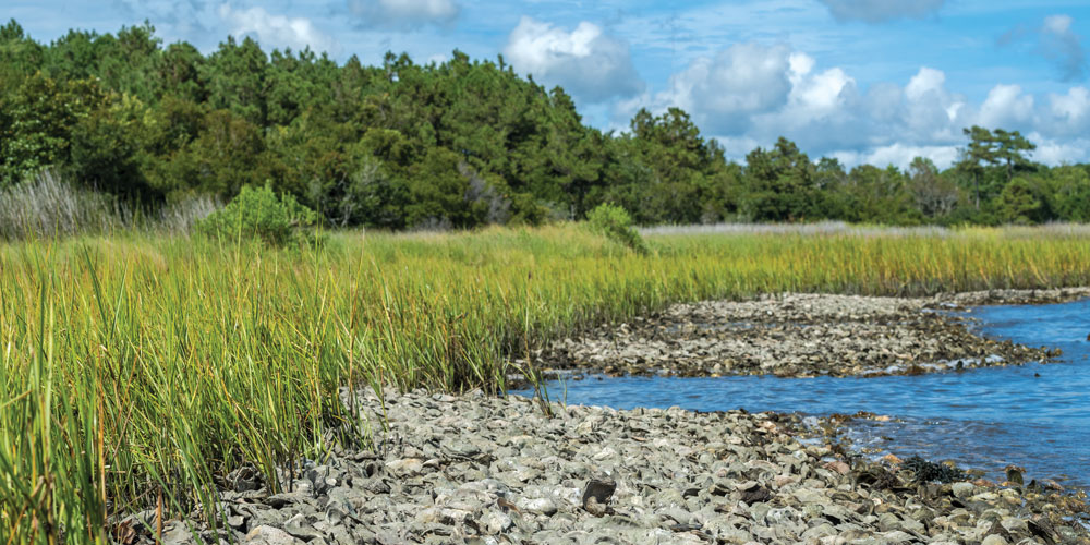 As with other areas endangered by erosion, the Federation recommended a natural remedy: a living shoreline. They installed 300 feet of granite sill and rallied volunteers to plant spartina marsh grass, whose roots both stabilize sediment and serve as a nursery for the young fish, crabs, and shrimp that will one day populate the waters beyond. Since the Durant’s Point Living Shoreline was constructed in 2011, it has weathered droughts, storms, and hurricanes — all of which, Foster says, seem to make the resilient shelter of marsh grass even stronger.