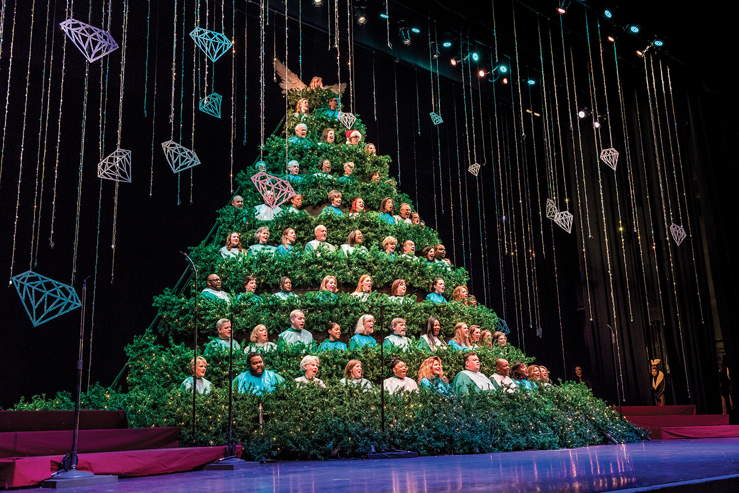 Diamonds for a queen, wings for an angel, and who spies a Santa hat in the Singing Christmas Tree? For more than 60 years of Christmases, the Carolina Voices have performed this production that combines singing, dancing, and comedy skits.