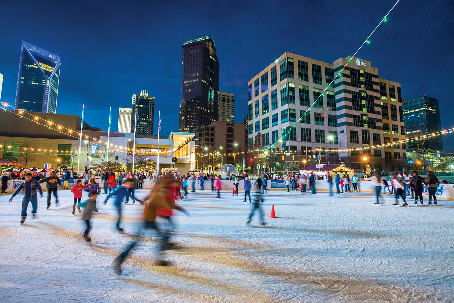 Take it outdoors — on more than 7,000 square feet of ice. Charlotte’s only outdoor ice-skating rink is open November to January at the NASCAR Hall of Fame Plaza. Show off your best Scott Hamilton figure eight. Swoosh.