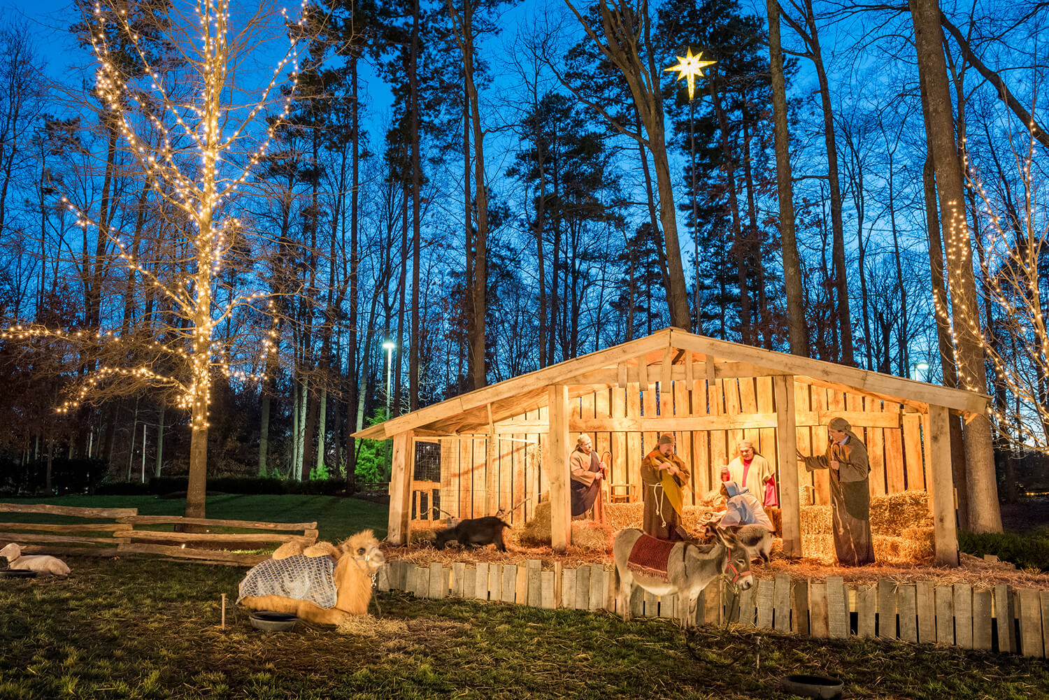 The Billy Graham Library plays host each evening to Christmas carolers, horse-drawn carriage rides, holiday stories, and a live nativity featuring donkeys, lambs, and a camel.