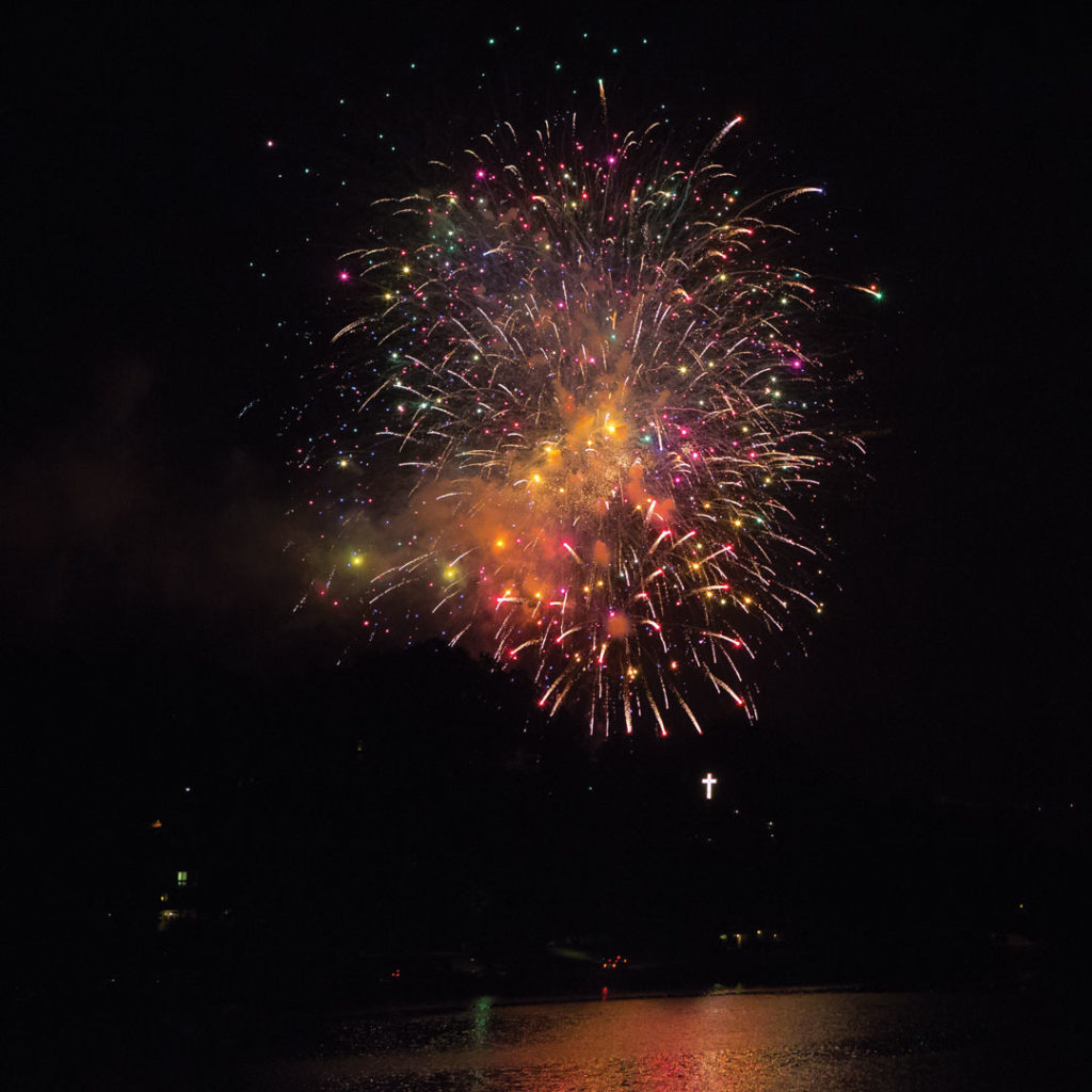 Music heralds Fourth of July festivities at Lake Junaluska with three consecutive days of concerts. On the Fourth, as soon as the parade arrives at its destination, the Nanci Weldon Memorial Gym, a local group like the Darren Nicholson Band begins to play. They fill the open-air gym with bluegrass tunes, a fitting soundtrack for the annual barbecue picnic and square dance. Later in the evening, the Lake Junaluska Singers — a local choral tradition since 1946 — board the retreat’s boat, Cherokee IV, and sing the national anthem, their voices echoing around the darkened lake. As they sing “the rockets’ red glare,” the night’s first fireworks burst into the sky.