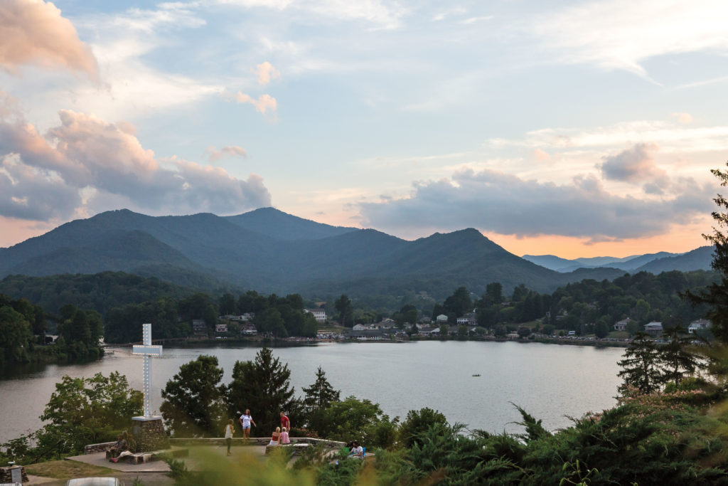 Perhaps the most enduring symbol of Lake Junaluska is the 25-foot-tall lighted cross below Inspiration Point. Built in 1922, the cross was initially intended to be lit only during the summer. But employees of the nearby Southern Railway petitioned to have it lighted at all times: The sight of the cross shining through the darkness helped them focus on their work, they said, reminding them that someone was always watching over them. In the decades since, the cross has only been turned off on two occasions: the brown-outs of World War II, and when it was repaired and replaced in 1994. It remains a popular place to view sunrises and sunsets, as well as a comforting presence all year ’round, and all through the night.