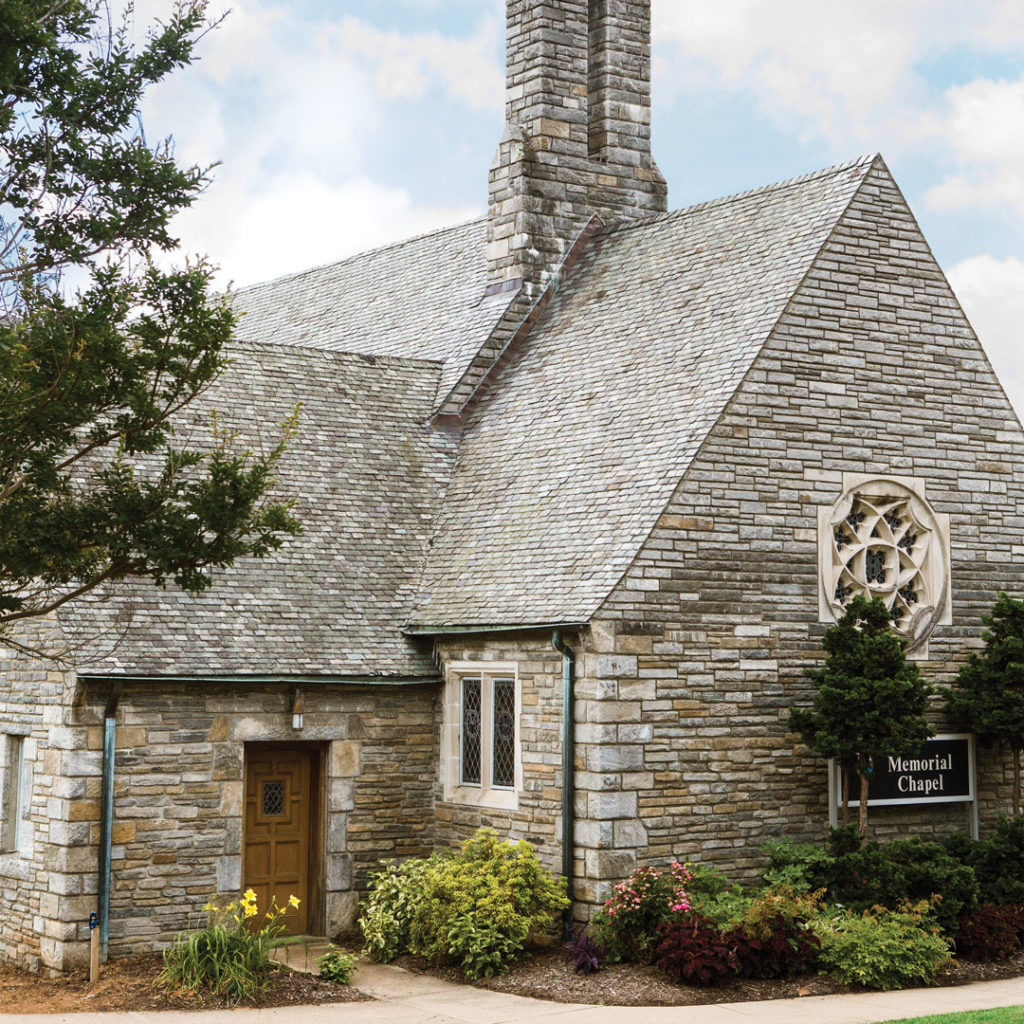 Near the water’s edge, a pair of historic gathering places stand side by side. In the 1940s, local Methodist churches were asked to help fund the building of Memorial Chapel by sending in the names of parishioners who’d served in the armed forces, along with a dollar for each name. More than 90,000 names were received (though not quite that many dollars).