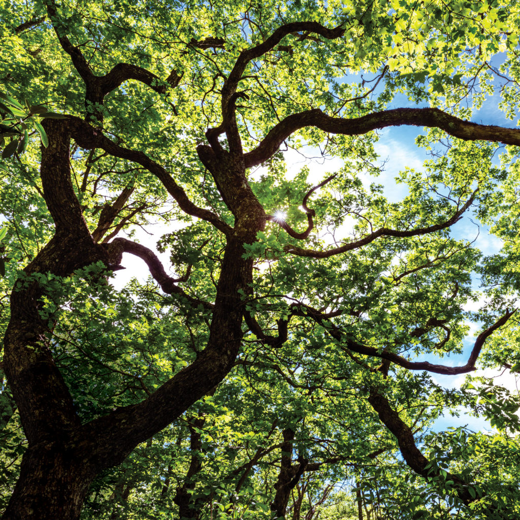 The eastern hemlock has long been the symbol of the deep, dark old-growth forests of the southern Appalachians. With the arrival of the woolly adelgid, a pest not native to North Carolina, in the early 2000s, whole groves of the tree began to disappear. An ongoing United States Forest Service survey of eastern hemlocks documents only the greatest of them. Starting in 2006, the Tsuga Search Project identified 75 “superlative” specimens more than 160 feet tall or exceeding 1,000 cubic feet of wood. One of those, the Cheoah, was treated with an experimental insecticide, as were 12 of its smaller neighbors. Today, the Cheoah is the last living tree from that study. Shown here is the second-largest tree from that grove, now protected and monitored by the Highlands-Cashiers Land Trust.