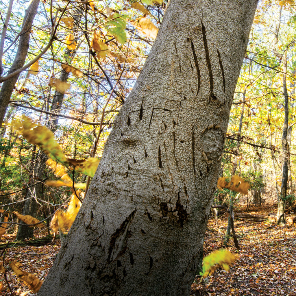 A Fraser magnolia shows evidence of bears along the China Creek/Upper Thunderhole Trail near Blowing Rock. In 2015, Pisgah National Forest, the National Park Service, and the Conservation Trust for North Carolina combined their efforts and their land to rebuild a historic trail near Blowing Rock. Though the trail is well-built, the full tour is a demanding seven miles.