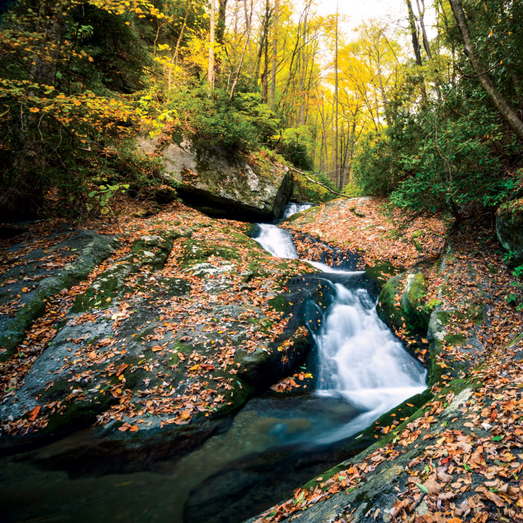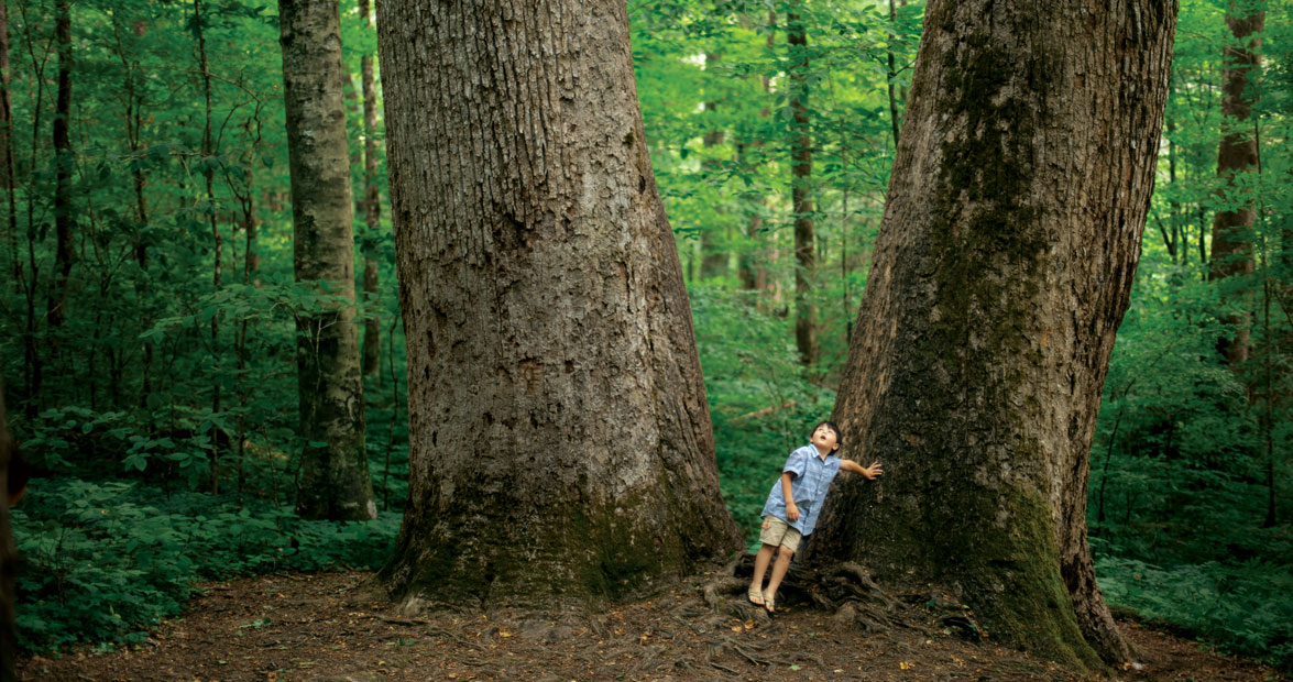The kiosk at Joyce Kilmer Memorial Forest in western North Carolina welcomes you to “The Primeval Forest.” Admission is free to the two-mile hike, which leads to an old-growth cove forest. Although its virgin chestnut trees disappeared in the ’30s because of disease and the woolly adelgid has decimated its great hemlocks, the forest still boasts soaring tulip poplars that dwarf visitors of any size, including Landy Moore (above).