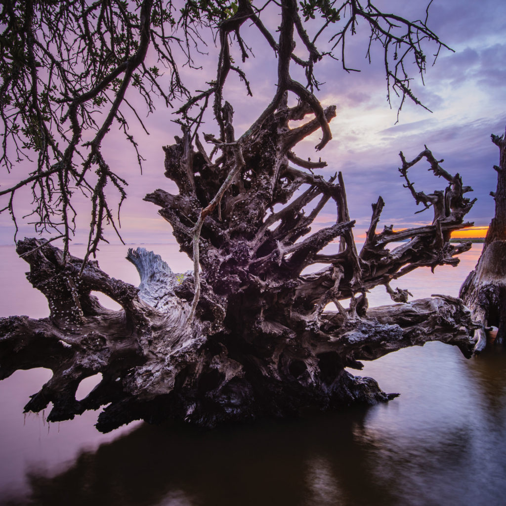 Until 2011, when Hurricane Irene leveled it, an iconic live oak grew in the transition zone between brackish marsh and open sound at the Nags Head Woods Ecological Preserve. Here at the edge of the preserve, Roanoke Sound is expanding, and the protective marshes are shrinking, threatening this maritime forest, one of the last of its kind on the Outer Banks.