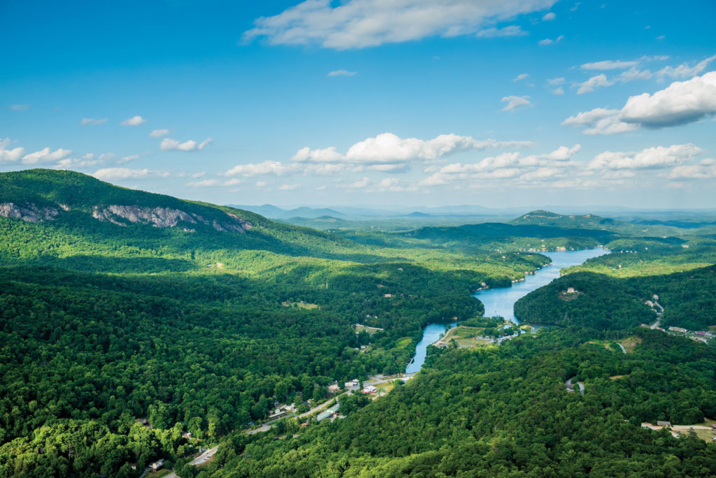 Then came the dam in 1925, and the two year’s time it took the Rocky Broad River to cover the town and fill the landscape. Then came the Depression, leaving the green coves and cool waters of Lake Lure — named by Morse’s wife, Elizabeth — lapping at the foothills of the Blue Ridge. The mountains’ gently rounded, billion-year old-heights are visible wherever you choose to gaze.
