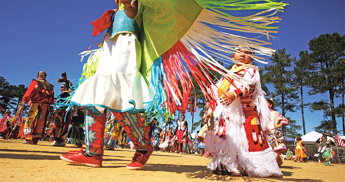 Feature image, above: During an intertribal dance at the Waccamaw Siouan powwow held each October in Bolton, everyone is welcome to join in.
