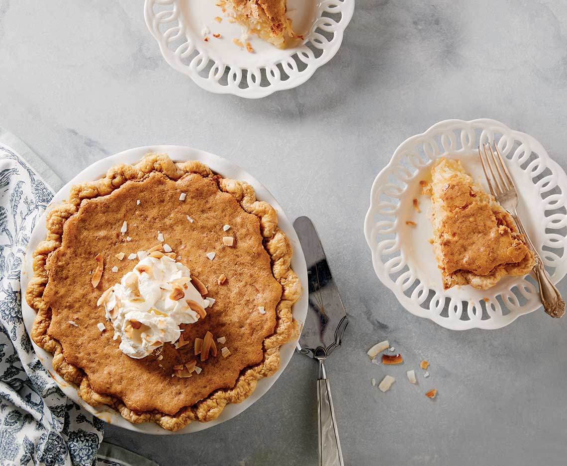 For the coconut lovers out there, Maxie B’s in Greensboro offers both a coconut custard pie and a coconut cream pie, along with a brownie-esque chocolate chess pie and several others. Customers from around Guilford County and beyond have long flocked to the bakery for its decadent cakes. In 2017, owner Robin Davis expanded the menu to include pie. As with cake, Davis was motivated by her own cravings for “authentic, Southern, classic recipes.” Maxie B’s customers love pie as much as she does, Davis says, and each recipe has developed a devoted following.