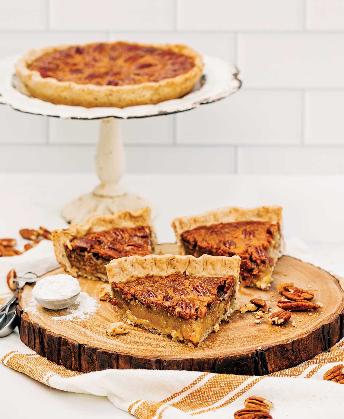 In addition to their honey-bourbon “Sweet Tea” pie, the bakers at Farm to Cake add pecans to hand pies, cheesecakes, and more. photograph by Tim Robison