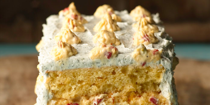 Frost layer with cream cheese mixture; spread layer of pimento cheese over frosting. Repeat honey, frosting, and pimento cheese on second layer.