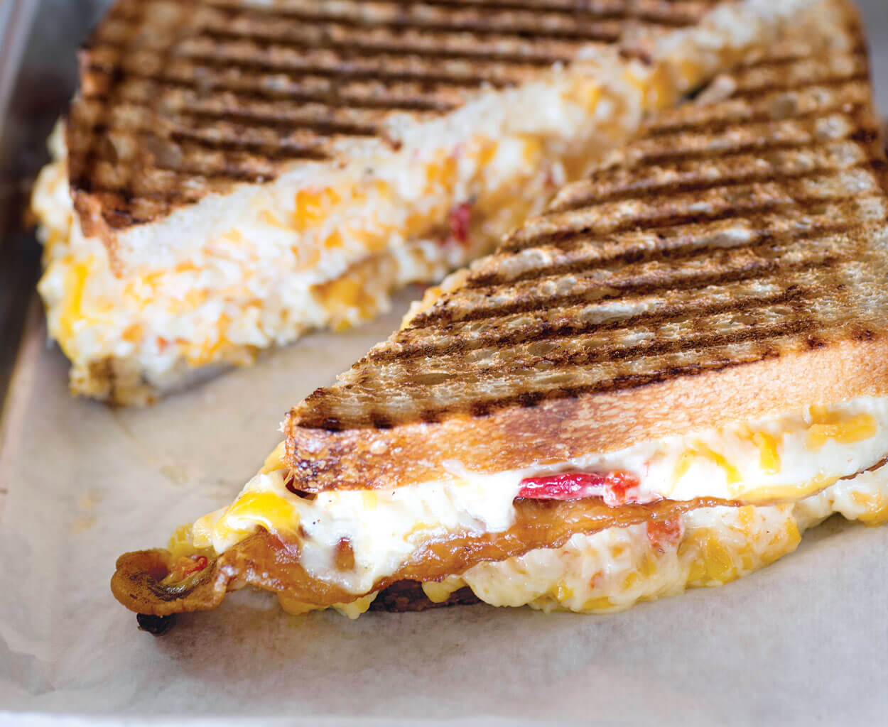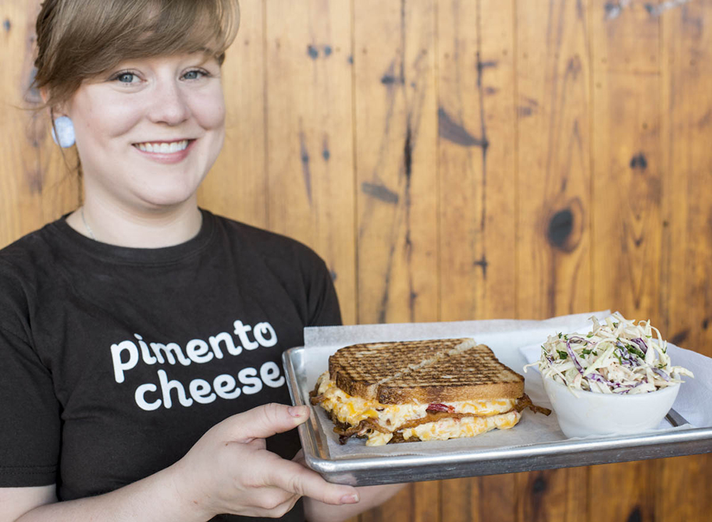Parker and Otis’ manager Erica Murray presents their Sandwich #23: Grilled pimento cheese with bacon. photograph by Lissa Gotwals
