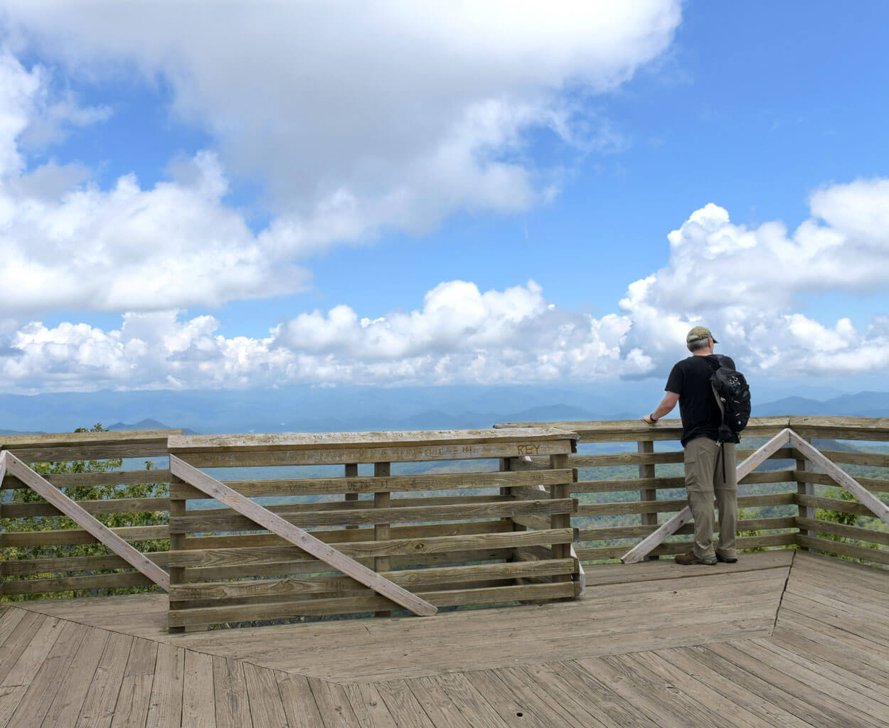 The journey to the top of Wesser Bald Tower is worth it for the stunning views. photograph by Franklin & Nantahala TDC