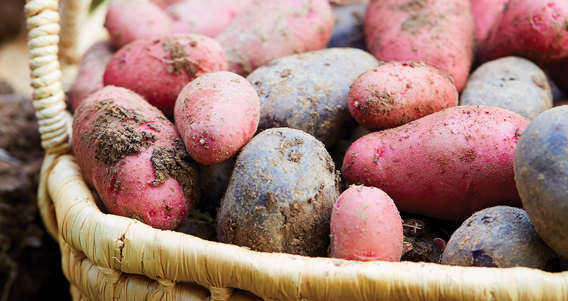 We grow a mix of potatoes: Purple Majesty, Viking Red, Yukon Gold. We grow fingerlings and bakers and some destined for potato chips. And since we dig the potatoes just before Independence Day, you can usually find a patriotic red, white, and blue potato salad on the picnic table come July 4.