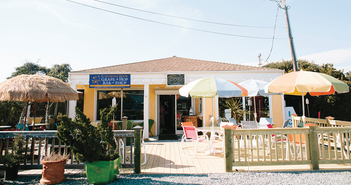 Driving south along the sand-swept pavement of Topsail Island’s N.C. Highway 50 is a journey of routine. For miles, it’s just cleverly named houses and glimpses of glittering waves and wind-bent trees. Although it’s only six miles from Surf City to the boundary of Topsail Beach, the ride stretches like one long run-on sentence. But the punctuation mark at the end is a true oasis — a colorful outpost where locals and tourists gather to unwind and enjoy a heady concoction of coffee, books, and wine.