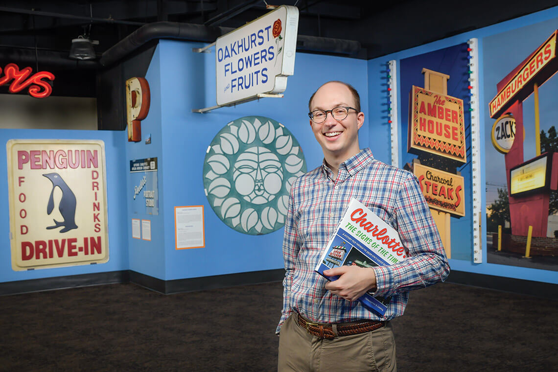 As part of The Charlotte Signs Project, Lawing curated an ongoing exhibit, “Charlotte: Signs of Home” — featuring many of the artifacts that he photographed for his 160-page coffee table book — for the Charlotte Museum of History. photograph by Brian Gomsak