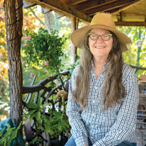 From her porch, Owen can look out at her native pawpaw trees and beyond to the mountains that frame her Lily Patch Farm. photograph by Charles Harris