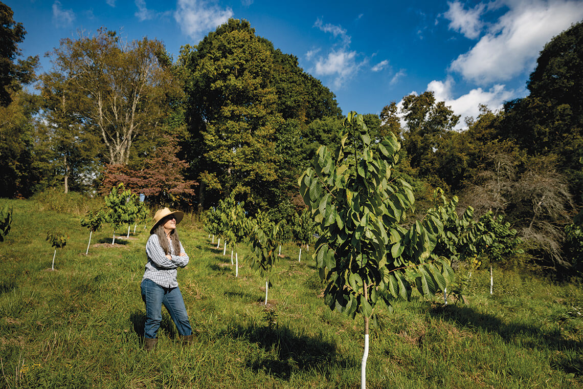 Susan Owen grows both native and hybrid pawpaw trees. photograph by Charles Harris