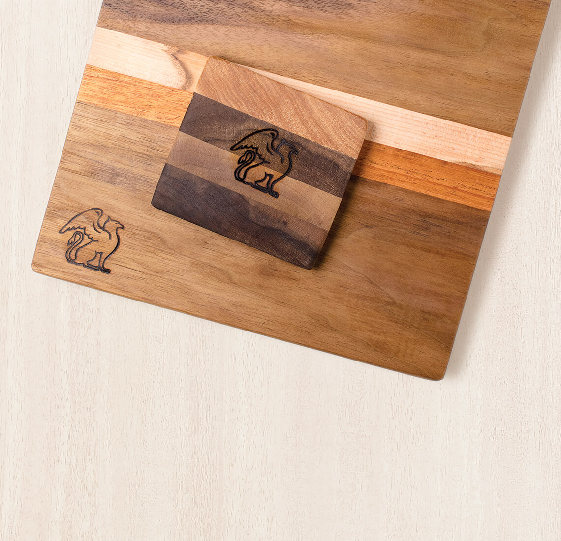 Griffin Burchell uses a laser engraver to etch his griffin logo — the winged lion of mythology — into the cutting boards and coasters that he sold at last year’s Hanukkah Market. photograph by Alex Boerner