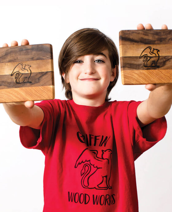Next to the Lego menorah table, 11-year-old Griffin Burchell, his older siblings Adam and Maya, and their parents, Chris and Leigh, were dressed in matching red T-shirts bearing the Griffin Wood Works logo: a mythical griffin. The impish Griffin, all smiles, was hawking his cutting boards and coasters made from recycled woods that he cuts and planes with high-tech tools at The Maker’s Space in Raleigh. Back at his home workshop, he then sands, glues, and oils each piece to a lovely luster. The 2019 market was Griffin’s first event, and he reportedly earned the most in total sales that day. Also a member of the robotics team at Ligon Magnet Middle School, Griffin says that he’s considering a career in designing surgical robots.