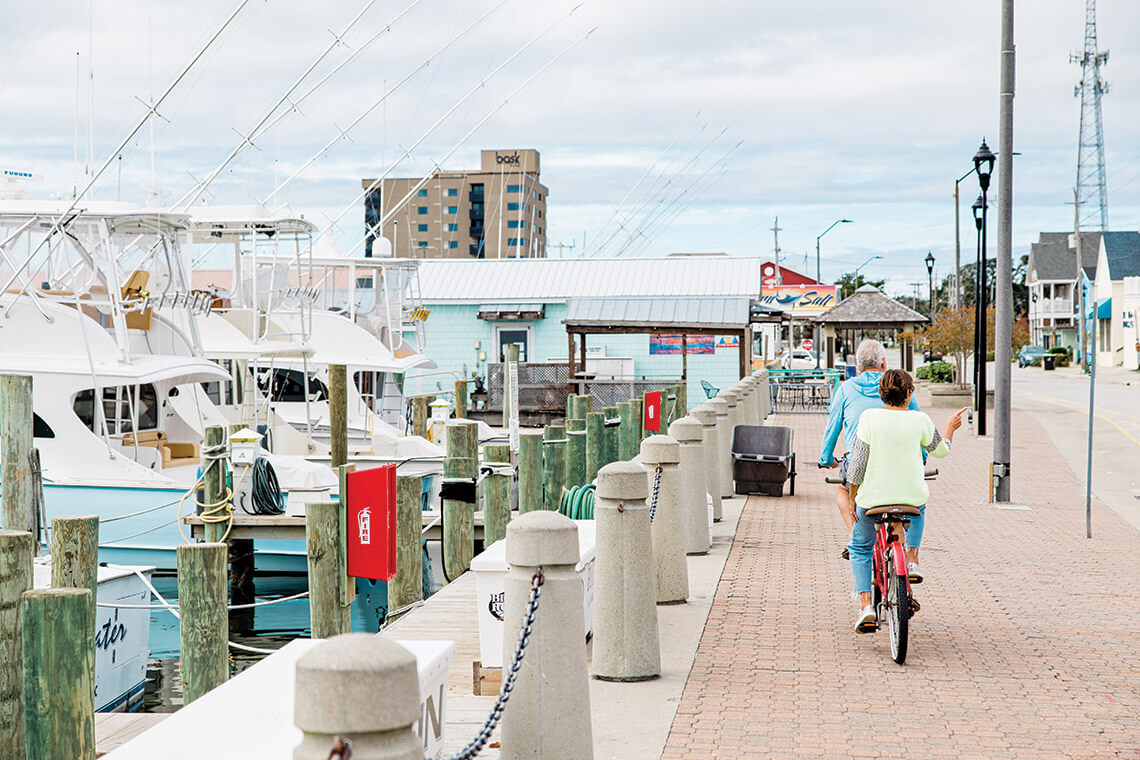 Our house in the Promise Land district of downtown Morehead City puts us within an easy cruise of the town’s stunning waterfront with restaurants, bars, shops, and a fishing fleet that heads home in the late afternoons and draws a crowd to check out the catch. In the other direction, we can pedal to the Dairy Queen in less than 10 minutes. We barely have to spin the tires to reach the sandy beach of Bogue Sound. For Julie, a fine weekend is marked by bike rides and boat trips. If we’ve pulled off three or four days without driving anywhere but down to Portside Marina, she’s a happy gal.