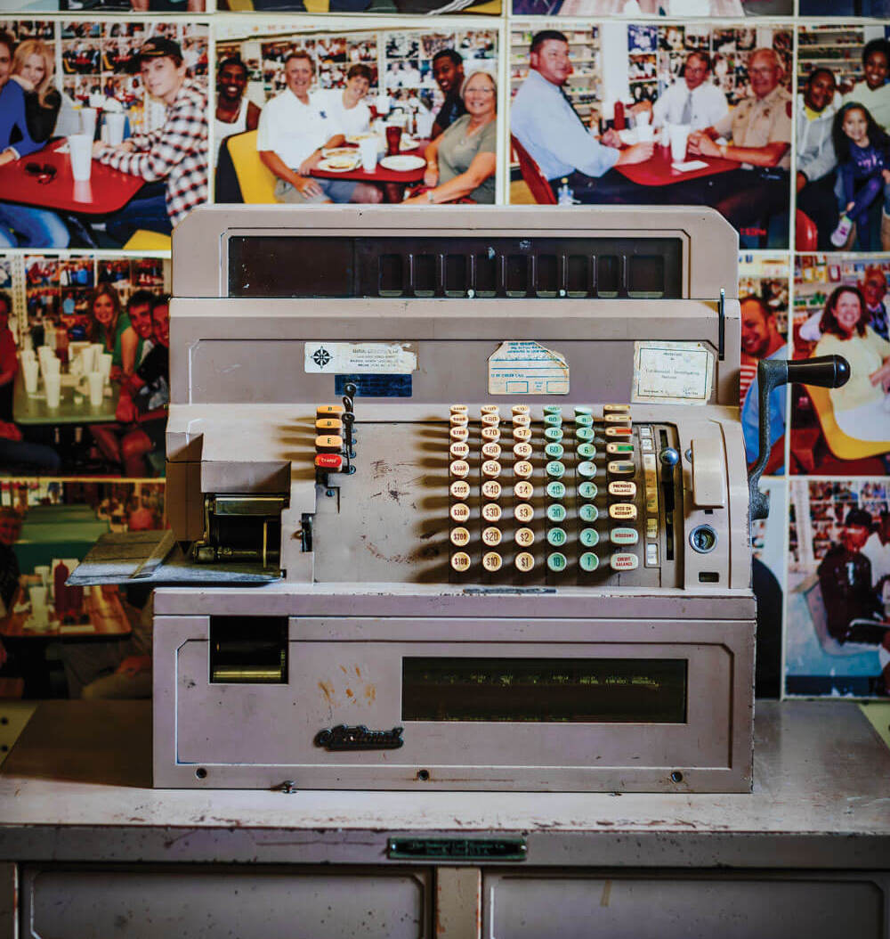 Generations of UNC Chapel Hill students have fond memories of the cash register at Sutton’s, and the music it made with every transaction. photograph by Charles Harris