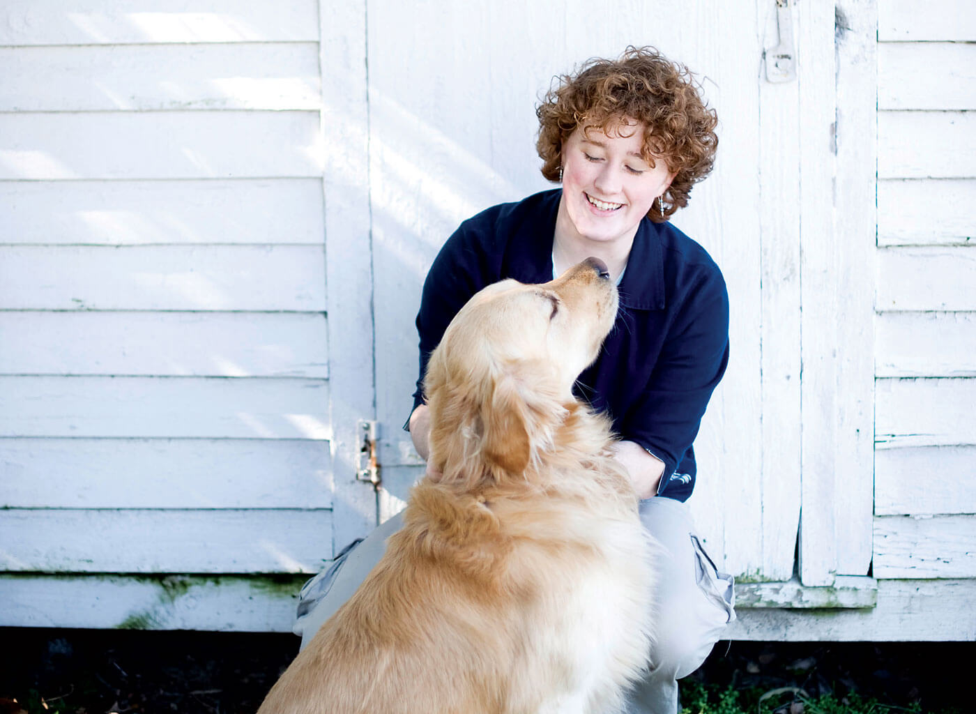 Brown, relaxing with Eleazar in front of her studio, credits family and friends with her success as an artist. “What you see is a team effort,” she says. photograph by Lissa Gotwals