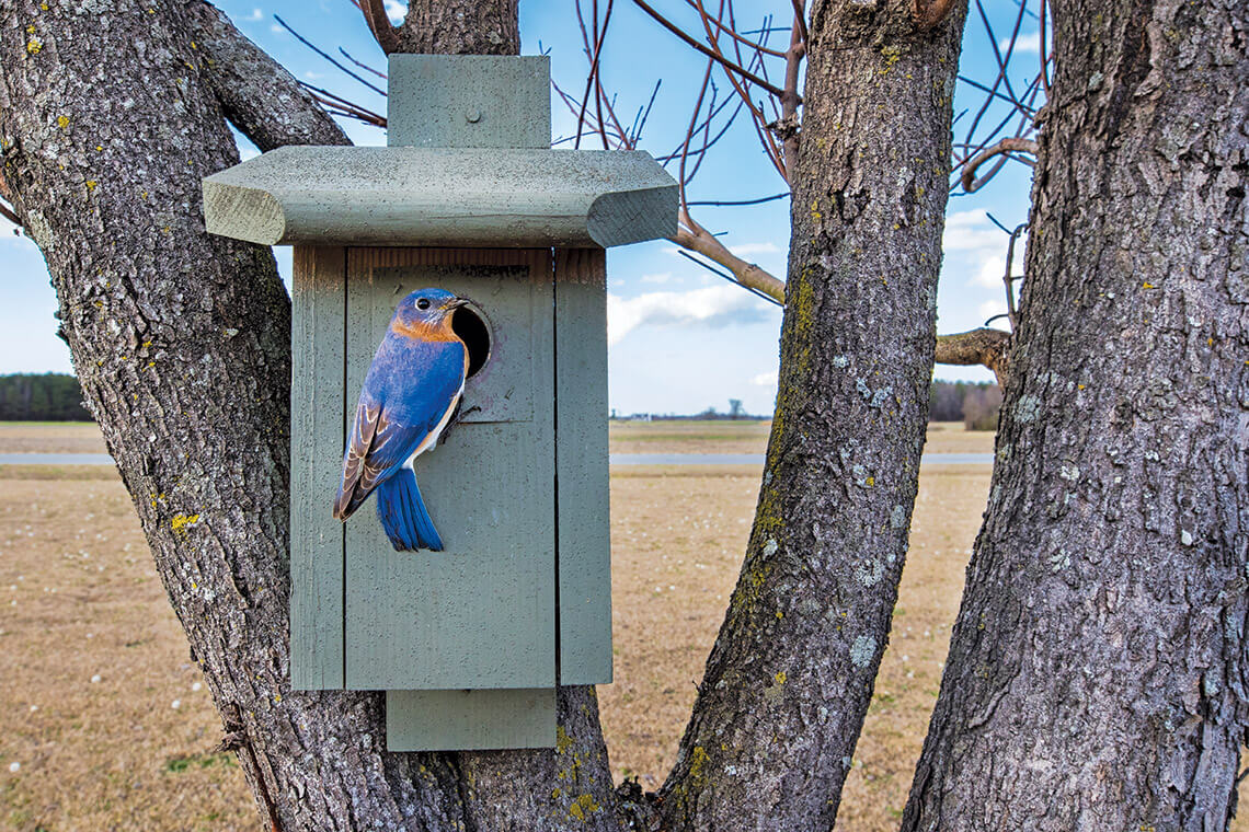 When that bird whistled to him, Newell stepped off his porch, walked to his garage, and started building his first bluebird house. In 1996, Newell, along with Steed and her husband, Anthony, founded the Eastern Bluebird Rescue Group. To date, the organization has built more than 371,000 bluebird houses, sold at cost. Now, thanks to the work of this and other organizations, an abundance of bluebirds make their homes across the state once again. — Rebecca Woltz