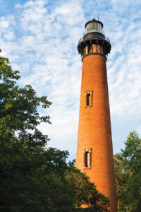 The red-brick Currituck Beach Lighthouse was built in 1875. photograph by KENNETH_KEIFER/ISTOCK/GETTY IMAGES PLUS