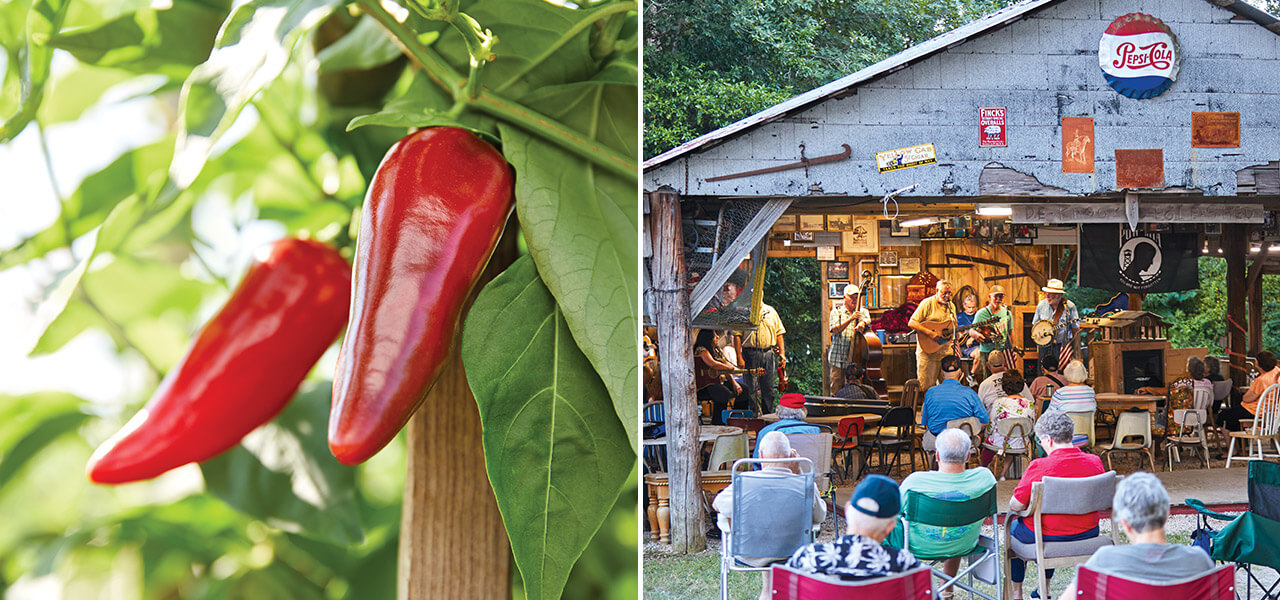 On Thursdays from April to October, Danny Pate (playing guitar) and his current band, the Red Bluff Ramblers, are a staple at The Pickin’ Shed’s open-mic nights. photograph by Eric Waters