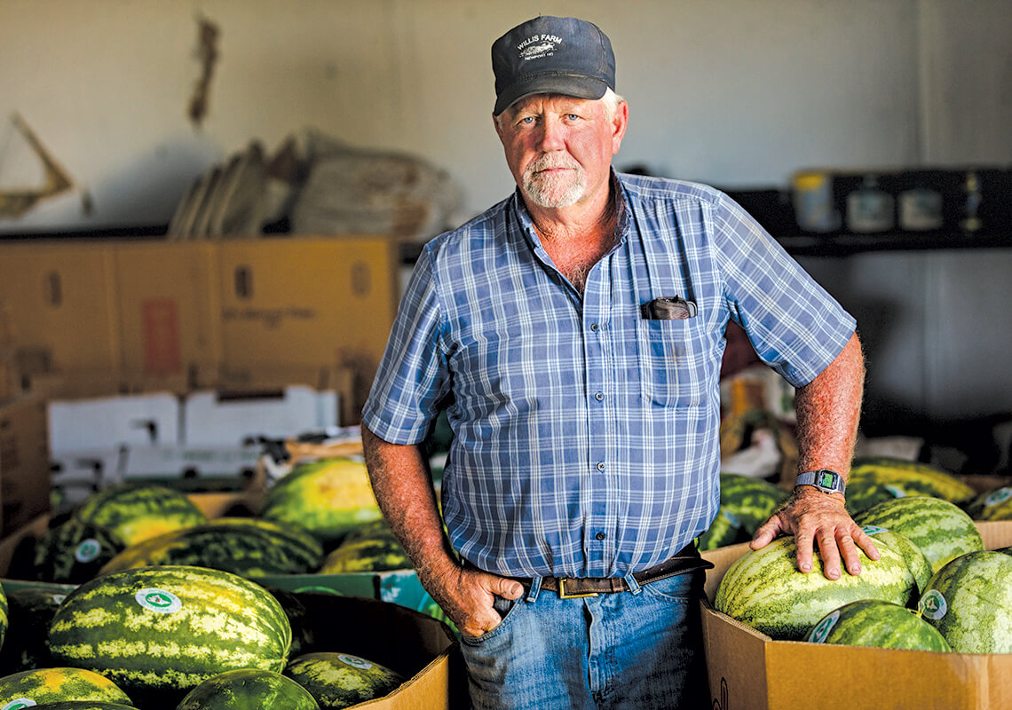 Alan Willis grows brilliant red Bogue Sound watermelons — as well as ones in a more surprising hue: yellow. photograph by Baxter Miller