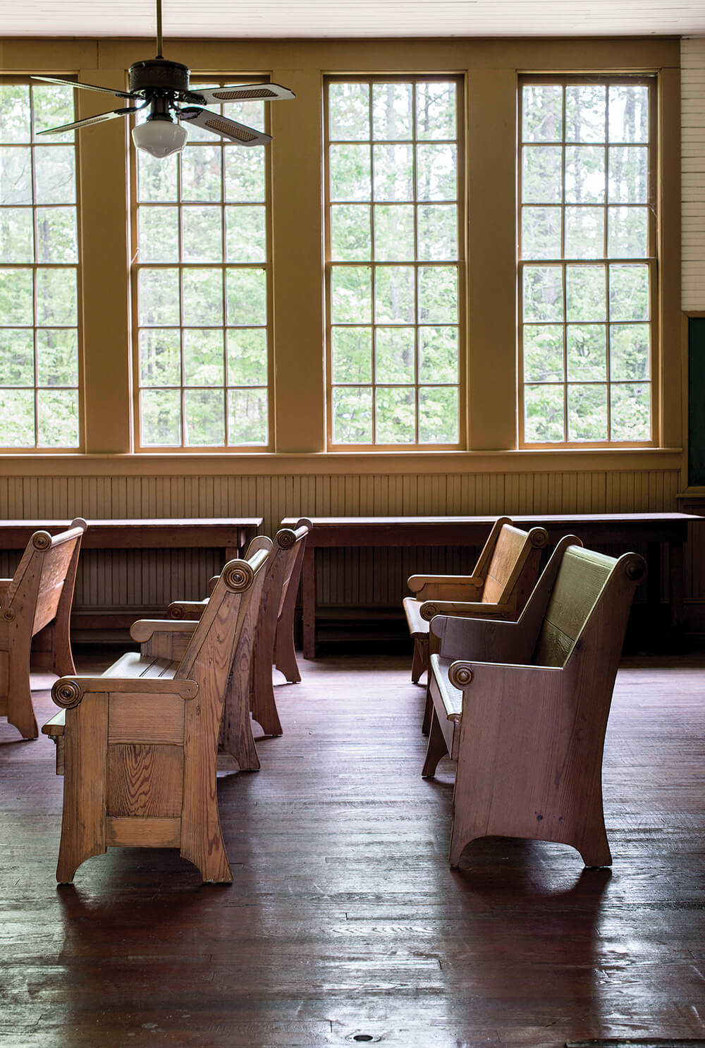 Phyllis invites school groups to come by, ask questions, and run their curious fingers over the pocked chalkboards, which were hand-me-downs from a white school, as most of the Rosenwald School supplies were. Sometimes she brings alums like Russell Mack, who sat next to Bessie in first grade. He might tell them about spelling tests, recess, or the wild blackberries he picked at the edge of the schoolyard woods. Or how his favorite subject, current events, sparked discussions about the war. “Everyone had relations in the service back then,” says the 83-year-old. “We’d have to stand up and give a report: Who it was, where they were. I had one brother in Saipan. When I made my report, no one heard tell of Saipan,” he laughs. “We had to go to the map!”