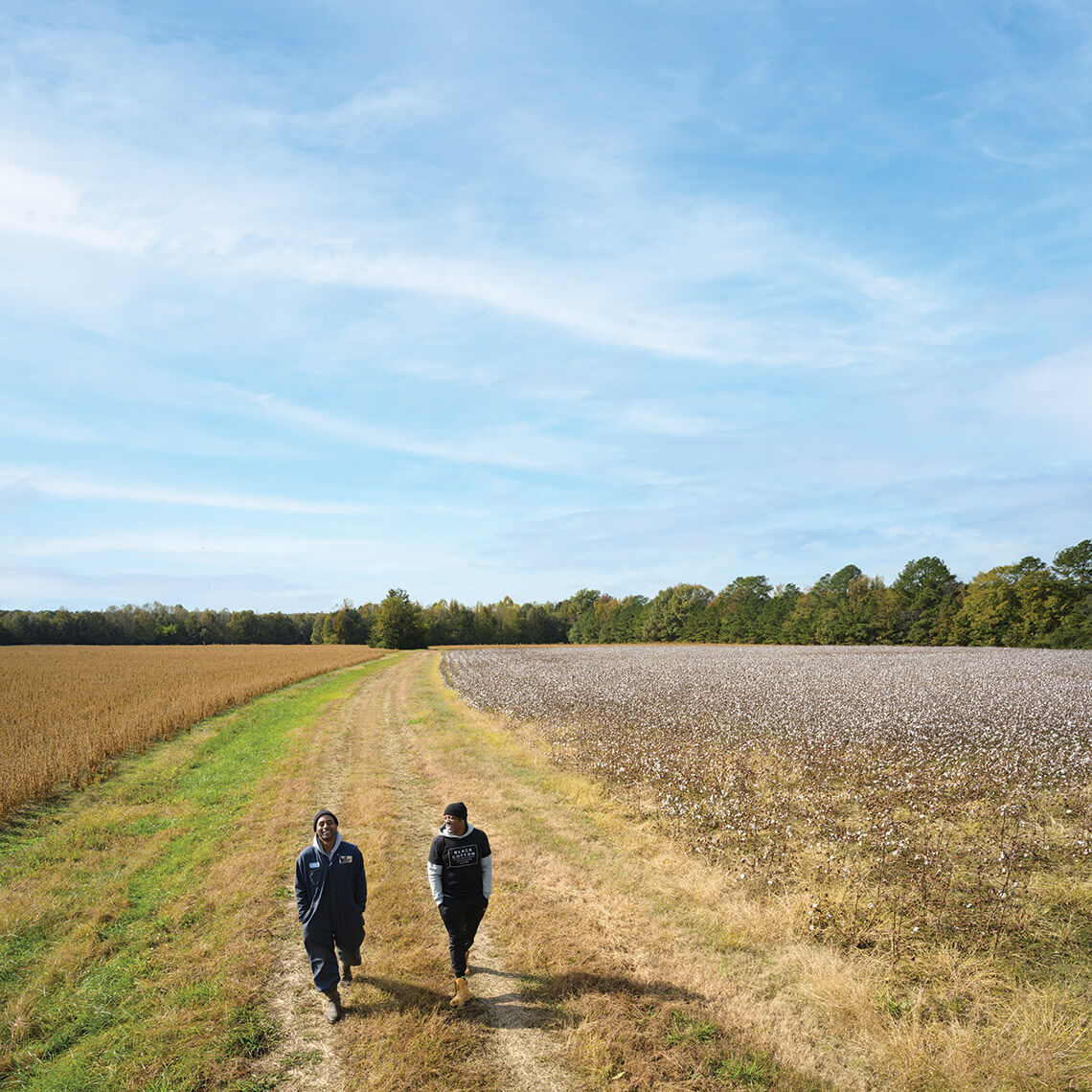 When Julius isn’t coming up with creative solutions for Black Cotton’s production and marketing, he advocates for North Carolina agriculture. In the past, he’s served as the farm resources coordinator for The Conservation Fund, as well as the North Carolina coordinator for The Black Family Land Trust, which helps historically underserved landowners retain and maintain their legacies. “Family farms,” Julius says, shaking his head. “There’s nothing more complicated.” Some landowners, he explains, see their farms only in terms of their monetary worth; others see them as homesteads where old-timers can live out their days until they die.