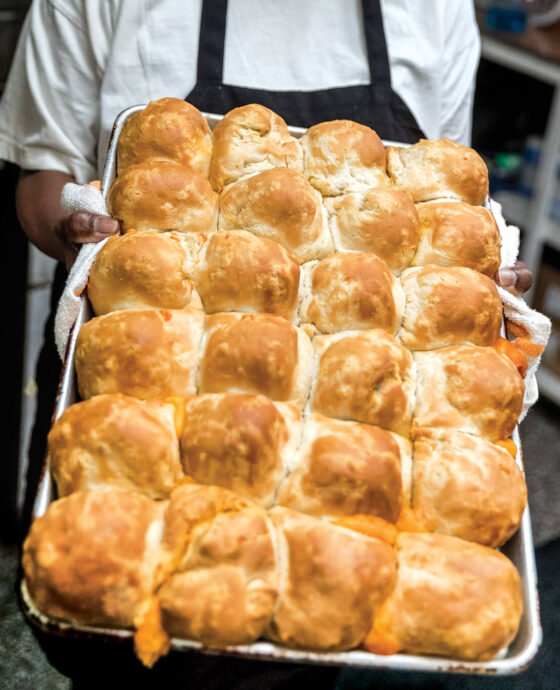 Illustrations by Emily Wallace Cheese Biscuits The buttery yellow exterior of Mom’s Grill in Washington is an apt advertisement for the golden biscuits baked inside. True to eastern North Carolina
